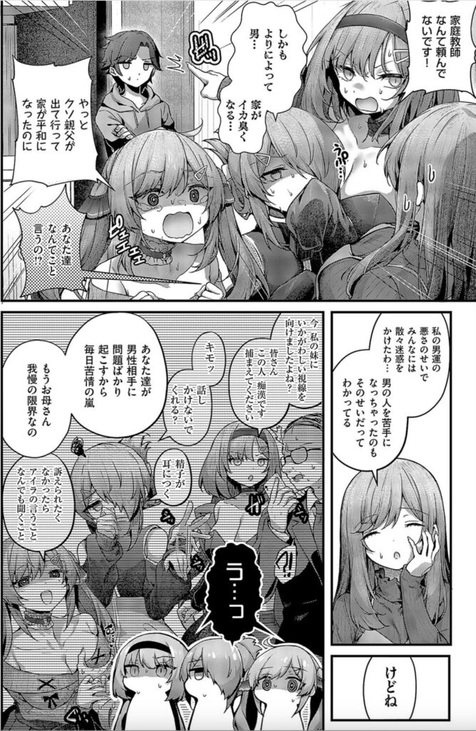 本作は、容姿端麗な三姉妹と家庭教師という閉ざされた関係性のなかで、主従逆転の快感とわからせ要素が凝縮された一作です。