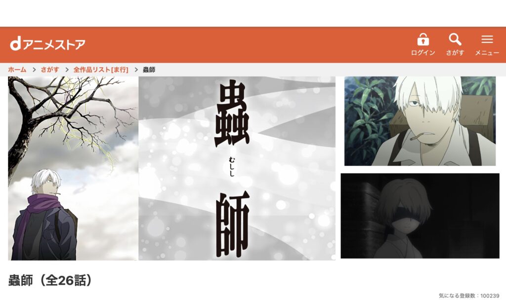 dアニメストアでは、『蟲師』シリーズの全エピソードが見放題対象として配信されています。