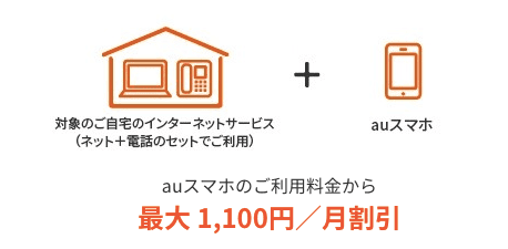 auのスマホと自宅インターネットをまとめると、家族割に加えてさらに割引を受けることができます。
