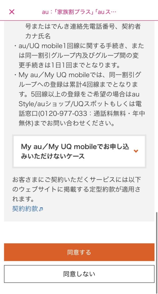 また、オンラインでの家族セット割の申し込みは「My UQ mobile」から最大4回線までまとめて申請可能です。