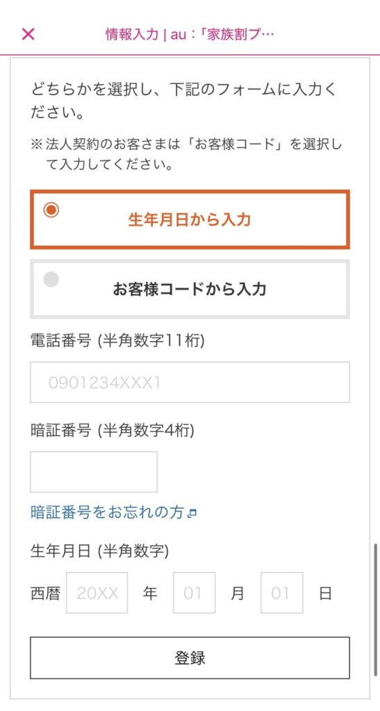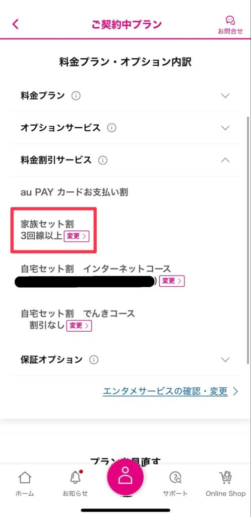 また、オンラインで申請の場合は、月末最終日に申込をすると当月中の申請と見なされず翌々月から家族セット割が適用となる可能性があります。