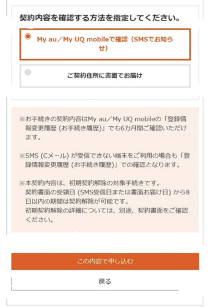 これで、UQモバイルの申し込み手続きは終了です。