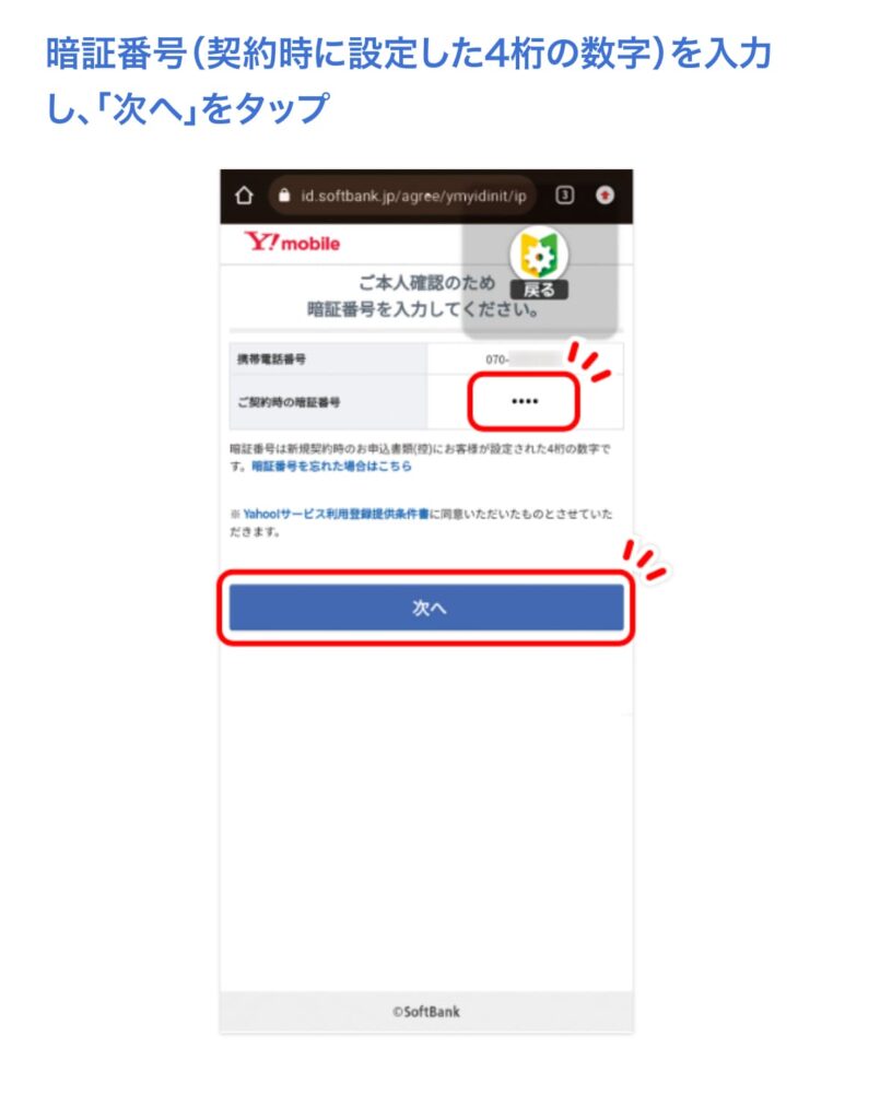 My Y!mobileのIDとパスワードを入力して、ログイン