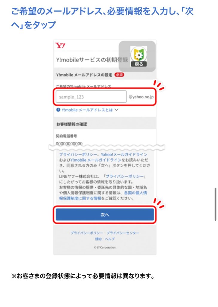 - ワイモバイルサービスの初期登録